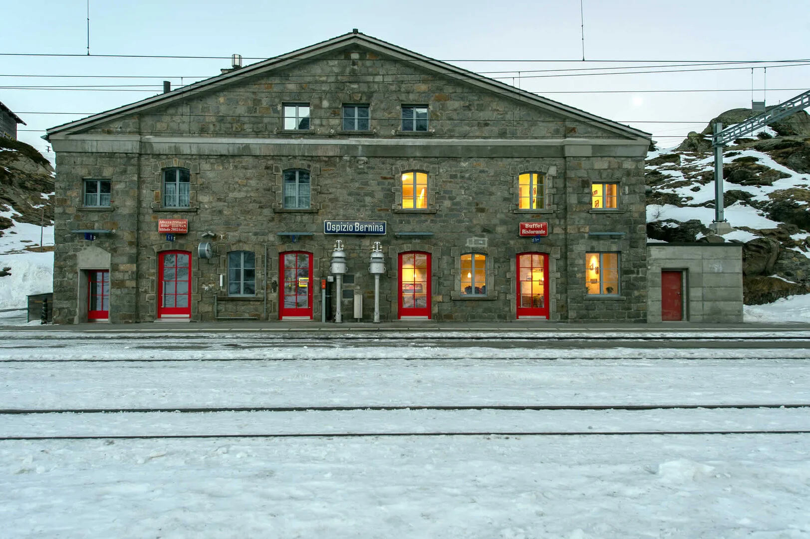 Das Hotel Buffet Ospizio Bernina liegt an der höchstgelegenen Station der Rhätischen Bahn und bietet eine wunderbare Lage mit Blick auf die Alpenlandschaft. Das Hotel ist neu und sauber, mit Zimmern, die jeweils ein eigenes Badezimmer haben. Es gibt auch ein Restaurant, das lokale Spezialitäten anbietet. Das Hotel ist von Juni bis November geöffnet und kann mit dem Berninaexpress-Zug oder mit dem Auto erreicht werden.